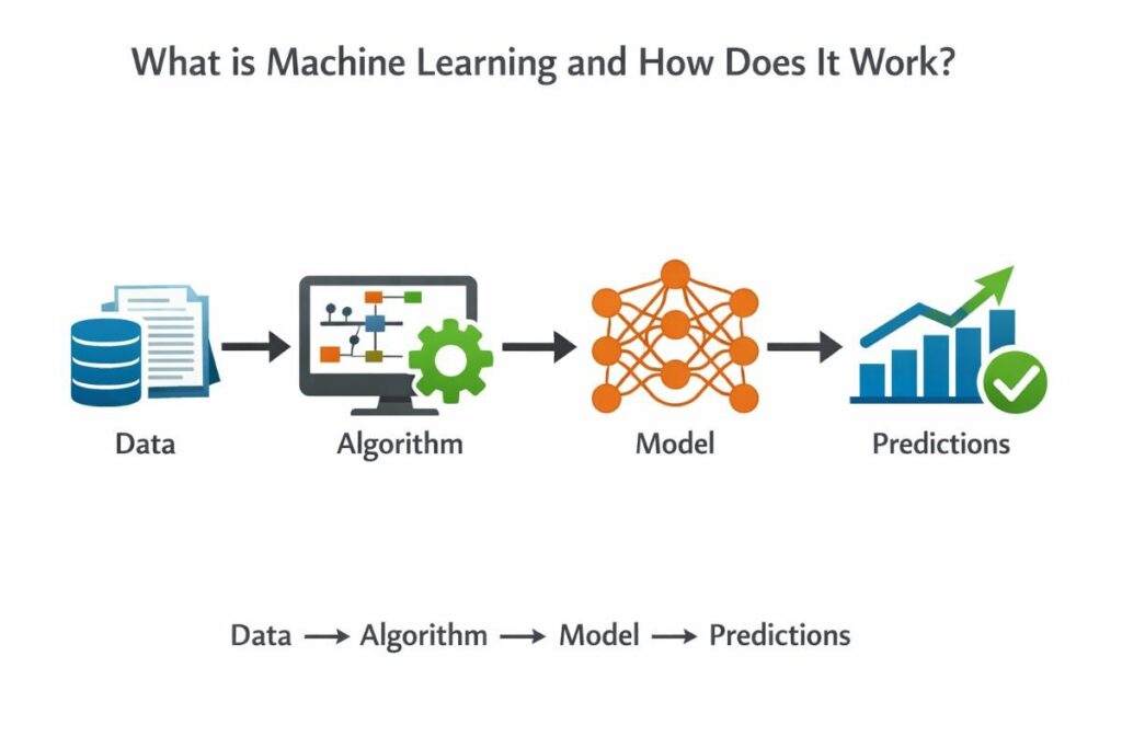 Machine learning (ML) is a branch of artificial intelligence (AI) that gives computers the ability to learn from data without being explicitly programmed for every task. Instead of a programmer writing thousands of specific rules, a machine learning system is trained on large amounts of data and learns to identify patterns on its own.